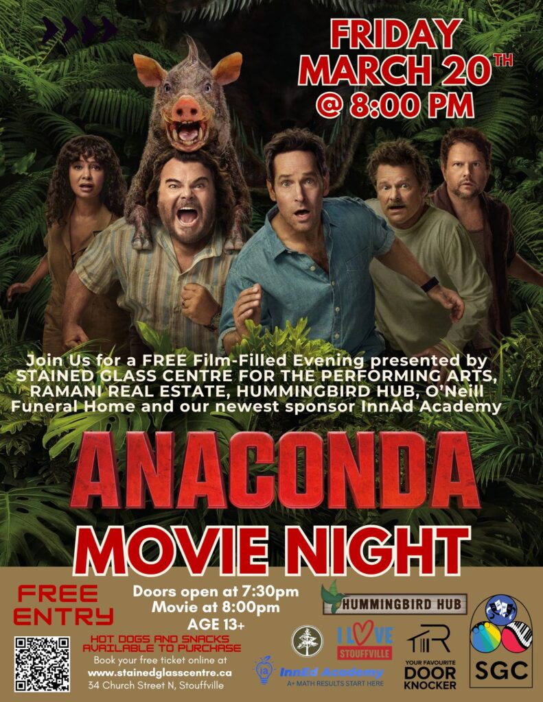 Join us for a FREE Film-Filled Evening presented by Stained Glass Centre for the Performing Arts, Imraz Ramani – Your Favourite Door Knocker, I Love Stouffville, Hummingbird Hub, O’Neill Funeral Home and our newest sponsor, InnAd Academy.